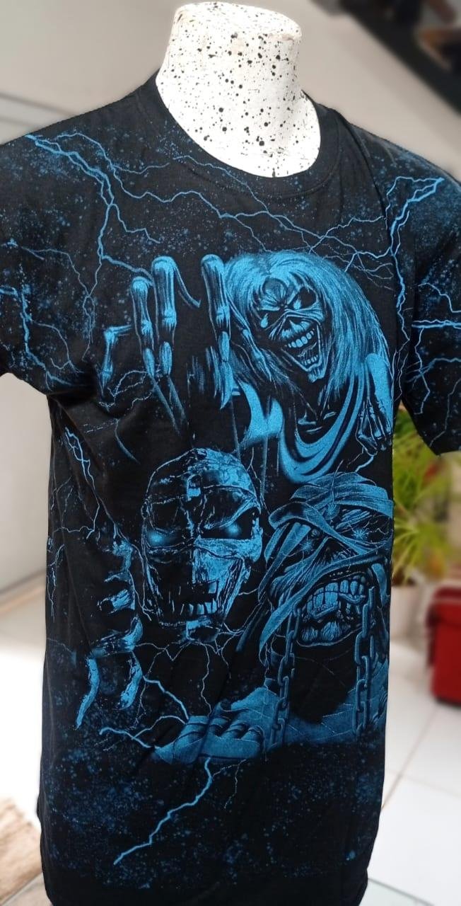 Descubre la remera de algodón con estampa fullprint inspirada en la icónica banda Iron Maiden. Este diseño no solo captura la esencia de la música, sino que también ofrece una explosión visual que resalta el arte gráfico de la banda. Ideal para fanáticos del metal y quienes buscan prendas únicas y llamativas.