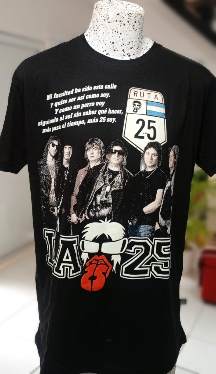 El diseño rinde homenaje a «La 25», una de las bandas más emblemáticas del género rock stone de Argentina. Con esta remera, estás llevando un fragmento de historia musical en tu pecho. Es más que una prenda: es una declaración de amor por el rock, una manera de expresar tu pasión y al mismo tiempo conectar con otros fanáticos del género.